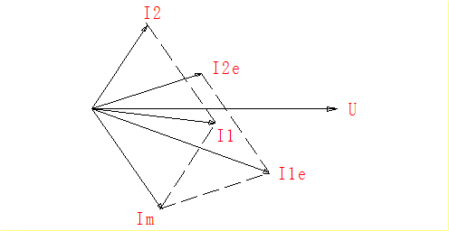 勵(lì)磁電流Im由關(guān)系式Im=I1e-I2e,從向量圖可得出Im。當(dāng)在轉(zhuǎn)子回路串接靜止式進(jìn)相器的附加電勢(shì)后,轉(zhuǎn)子電流的相位變?yōu)閳D中的I2。由于負(fù)載不變,勵(lì)磁電流Im不變。此時(shí)的電子電流I1由關(guān)系式I1=Im+I2,從向量圖可得出I1,如圖所示。從圖中可以看出I1的功率因數(shù)角和幅值都比I1e小,說明電機(jī)的功率因數(shù)有所提高,定子電流有所下降。這正是靜止式進(jìn)相器所要達(dá)到的對(duì)電機(jī)補(bǔ)償?shù)哪康摹?/span>
